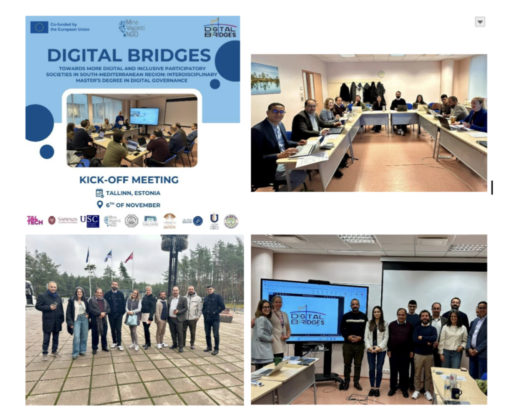 Le projet vient de démarrer, lors du kick off meeting organisé à Talin en novembre 2025. Il est coordonné par l’Université de technologie de Tallinn – Estonie, et le consortium est composé de 11 partenaires, incluant 3 établissements d’enseignement supérieur et une ONG de l’Union européenne (Estonie, Italie et Espagne) ainsi que 6 établissements d’enseignement supérieur et une ONG des pays sud-méditerranéens (Maroc, Palestine, Tunisie) :