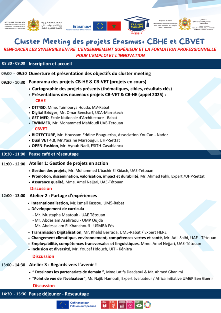 Renforcer l’impact, la cohérence et la durabilité des projets Erasmus+ CBHE et CBVET en favorisant les synergies intersectorielles, la capitalisation des résultats et le dialogue stratégique entre acteurs.
