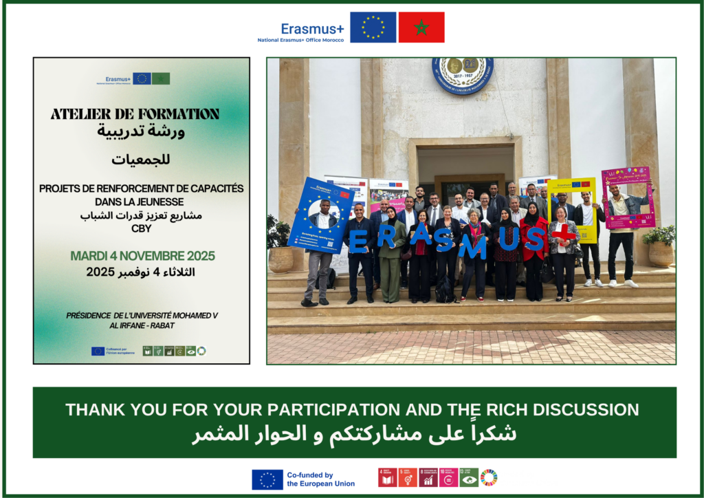 Le défi désormais : transformer ces idées en dossiers solides, innovants et inclusifs qui répondent aux appels à projets CBY. Le Bureau Erasmus+ Maroc reste mobilisé pour accompagner cette dynamique et encourager les associations à relever ce challenge européen et méditerranéen.
