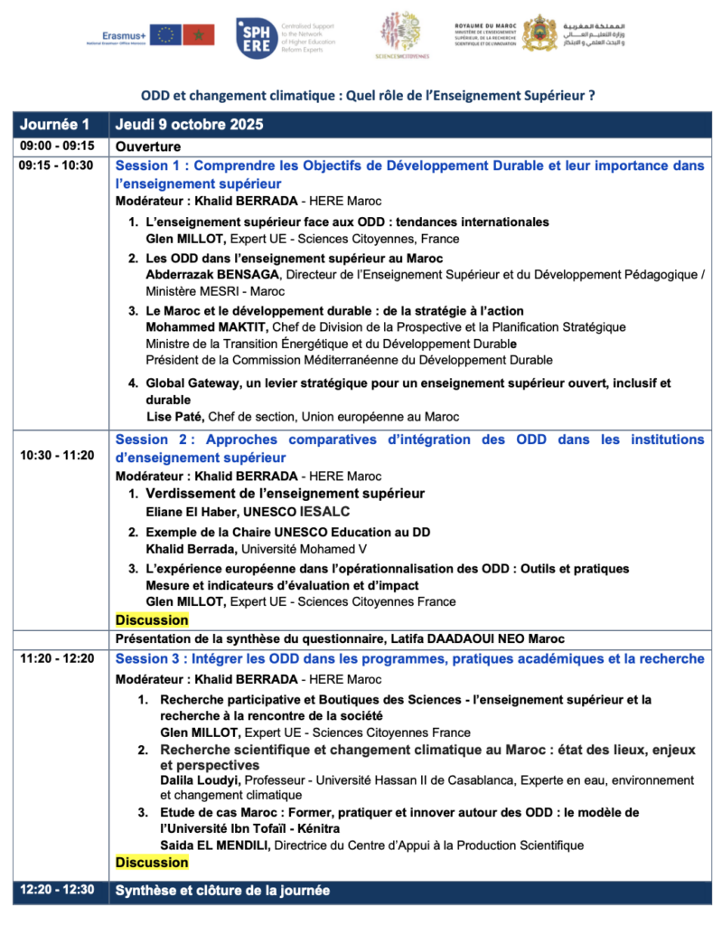 - Sensibiliser les responsables universitaires, enseignants et décideurs aux enjeux et défis de l’intégration des ODD dans l’enseignement supérieur.
