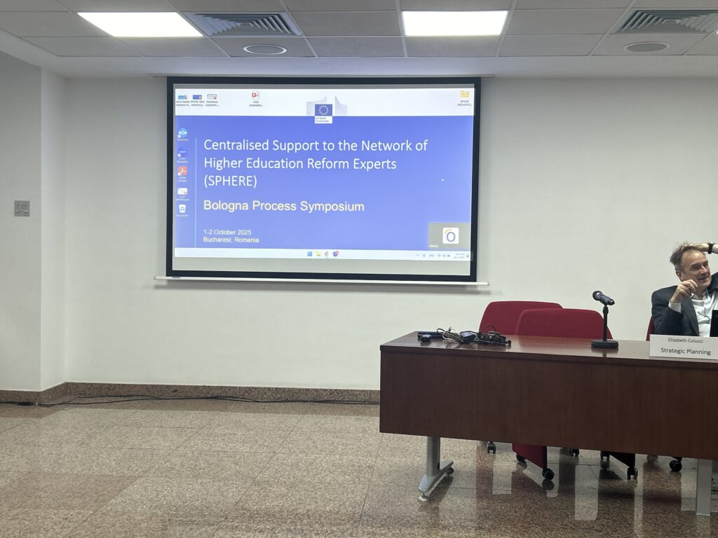 Du 1er au 2 octobre 2025, s’est tenu à Bucarest le Symposium sur le Processus de Bologne, un événement majeur organisé en parallèle de la conférence annuelle SPHERE 2025. Cette rencontre internationale a rassemblé entre 100 participants, dont des représentants des Réseaux nationaux Erasmus (NEO), des Experts en Réforme de l’Enseignement Supérieur (HERE), ainsi que des membres du Bologna Follow-Up Group (BFUG) et de ses structures de travail;